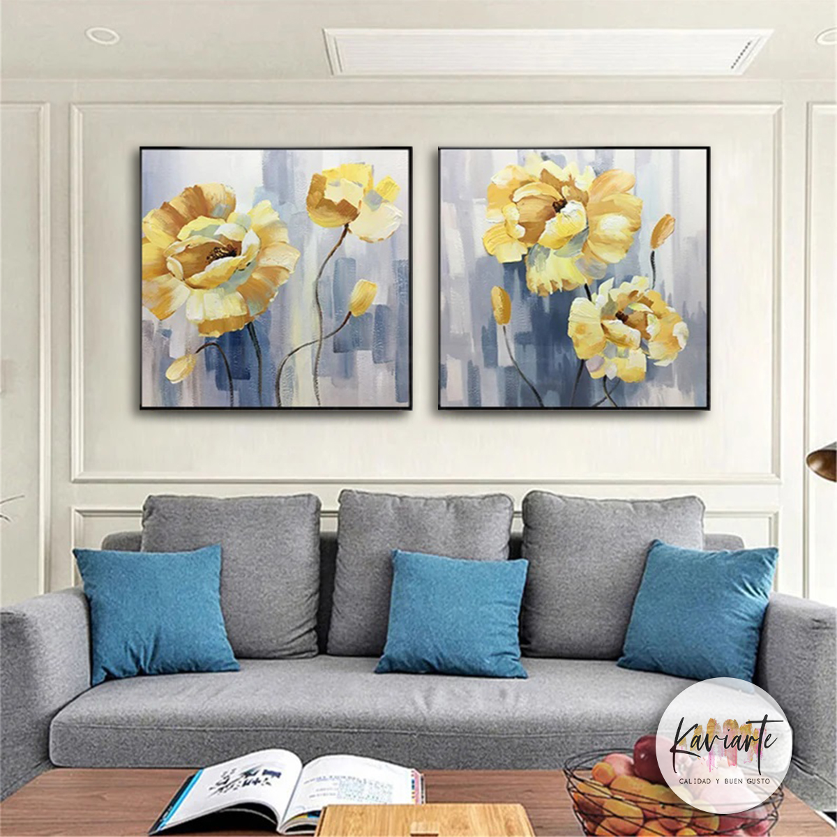 Hermoso díptico pintado al óleo, trabajado con pincel.