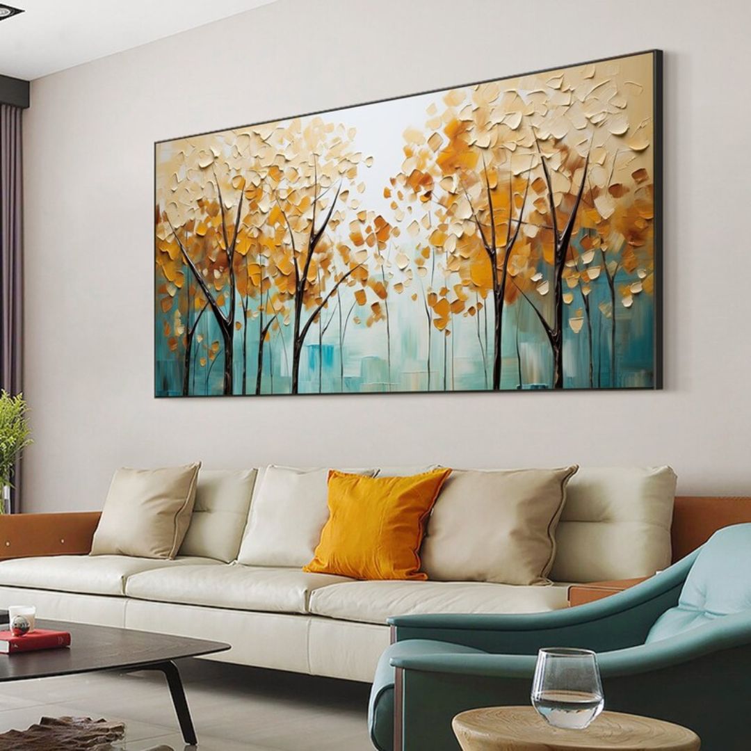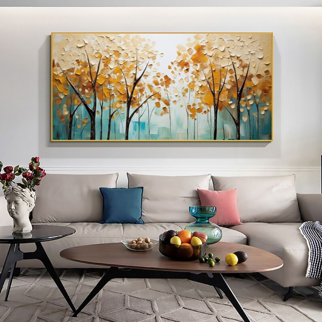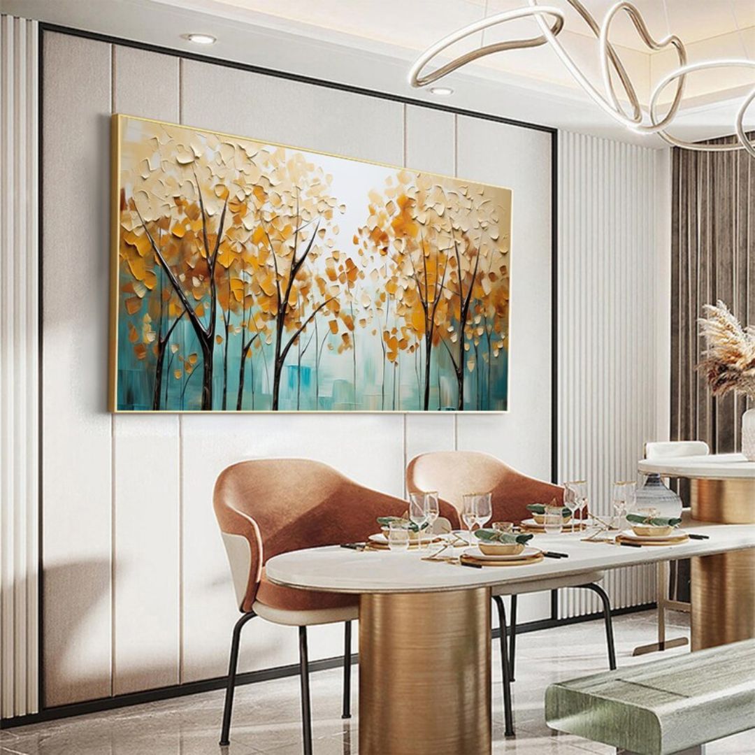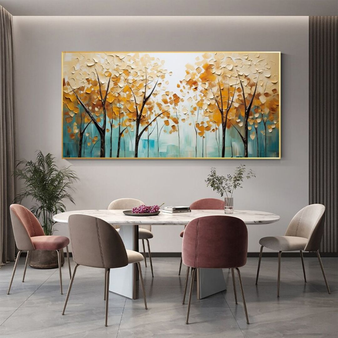 Bello cuadro pintado al óleo, trabajado con técnica de espatulado, con finas texturas y detalles en relieve.